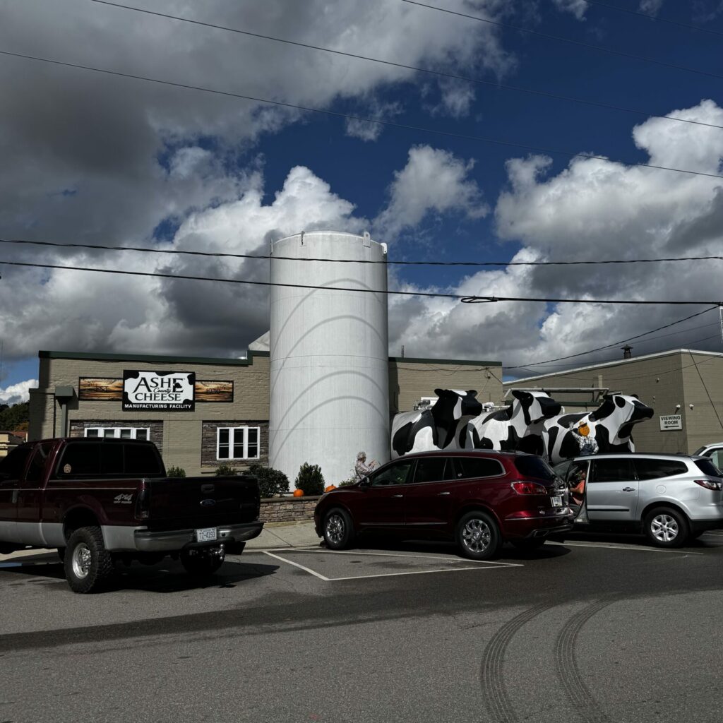 also. on our way into west jefferson, i texted my old pal tim to see if we could meet up, and they happened to be in town and about, so he and his wife gloria met us at ashe co. cheese. it’s been YEARS since i’ve seen them and it was so good, but when a tour bus rolled in, we said some quick goodbyes hurried out.