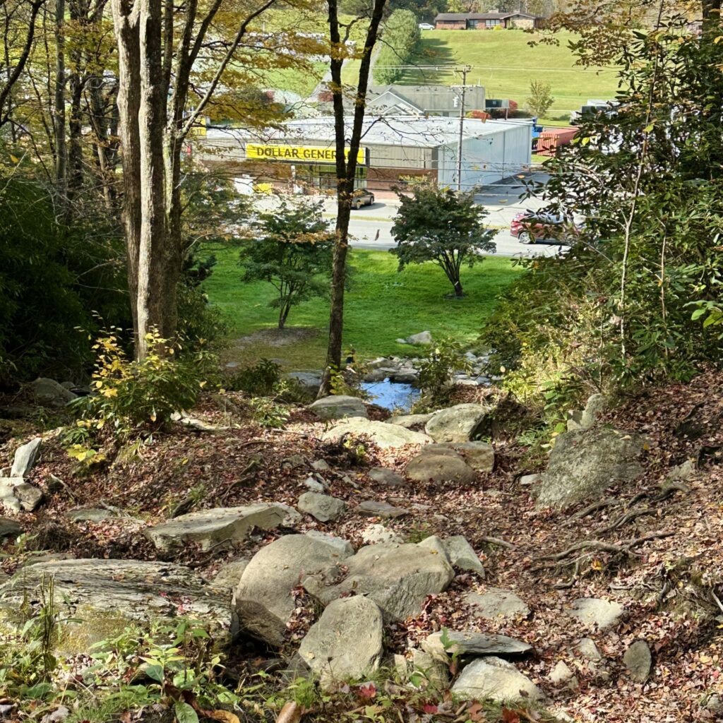 then we hit the road towards tennessee to do some thrift and antique shopping. on the way, we saw a roadside waterfall on the map, so we made a quick stop. it was definitely road side. and lovely. until you viewed the road from the top of the waterfall. i mean, what’s more iconic and fitting than a dollar general on the side of a highway in rural nc?