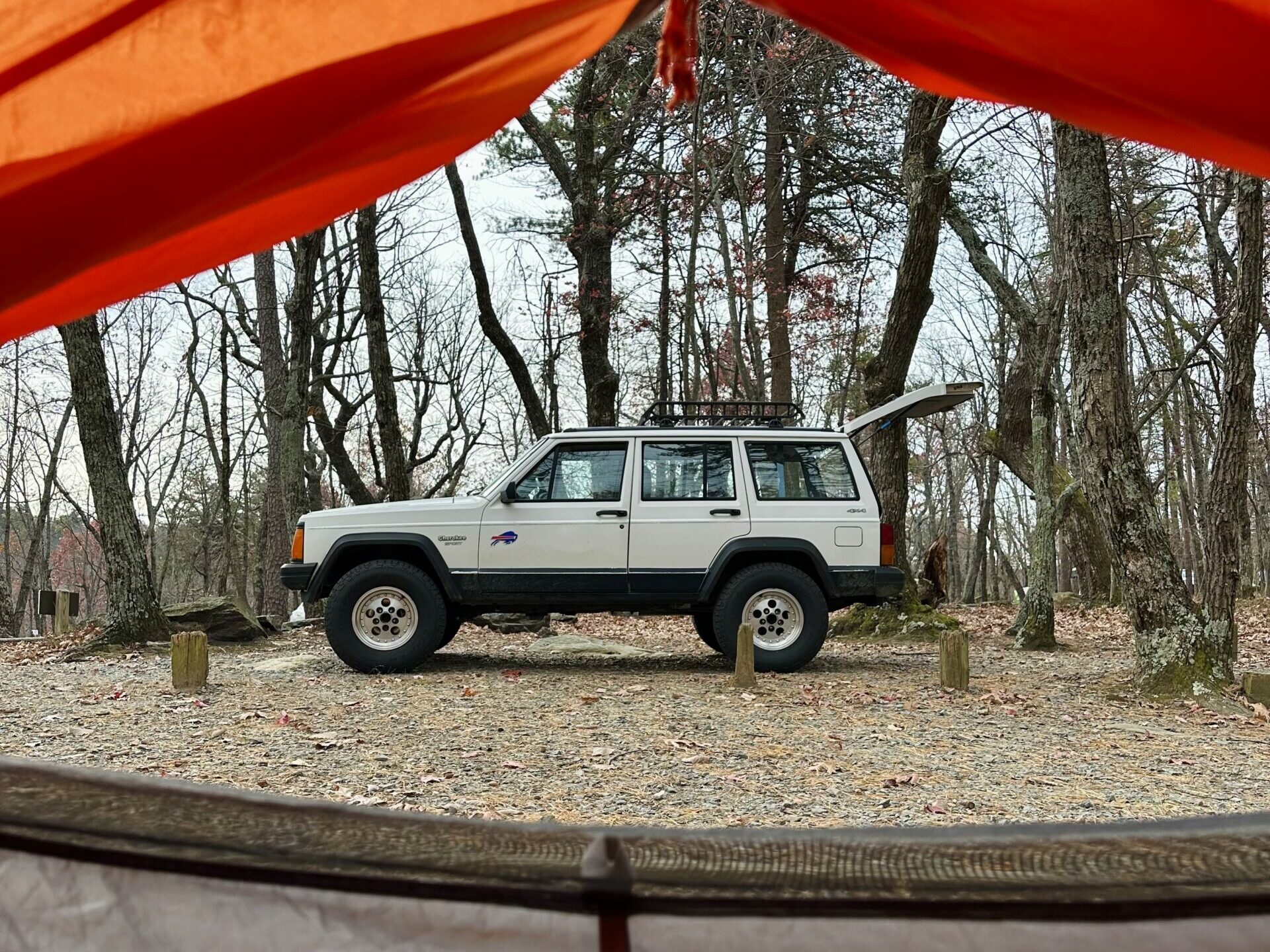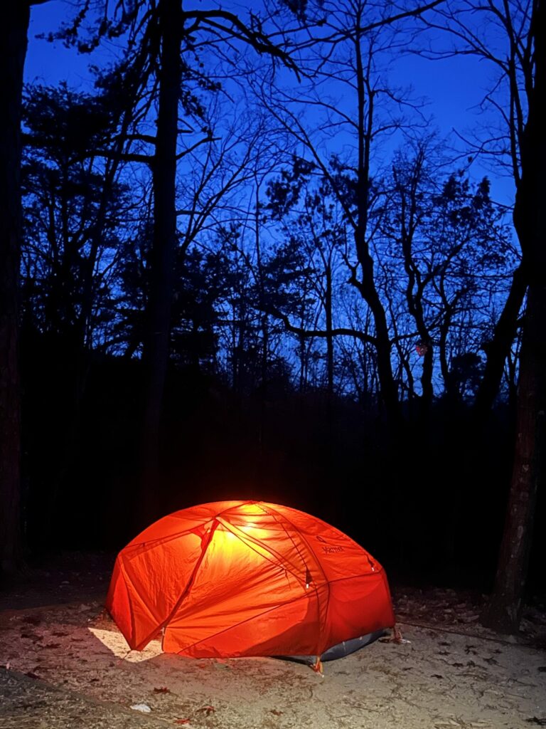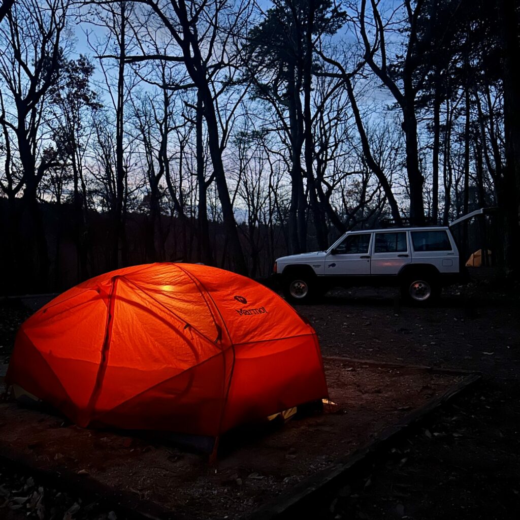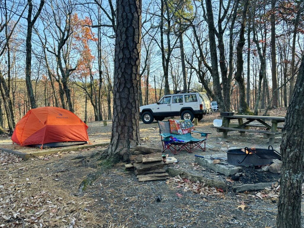 in what has now become an annual ritual, i spent the weekend of my forty ninth birthday on a solo tent camping excursion in the woods of hanging rock state park. after i dropped off the kids at school on friday, i came home and packed up the cherokee for her inaugural trip to this beloved home away from home. i rolled into camp around two or three and began to leisurely set up my weekend accommodations, admittedly optimizing my outdoor feng shui for prime photo opportunities.