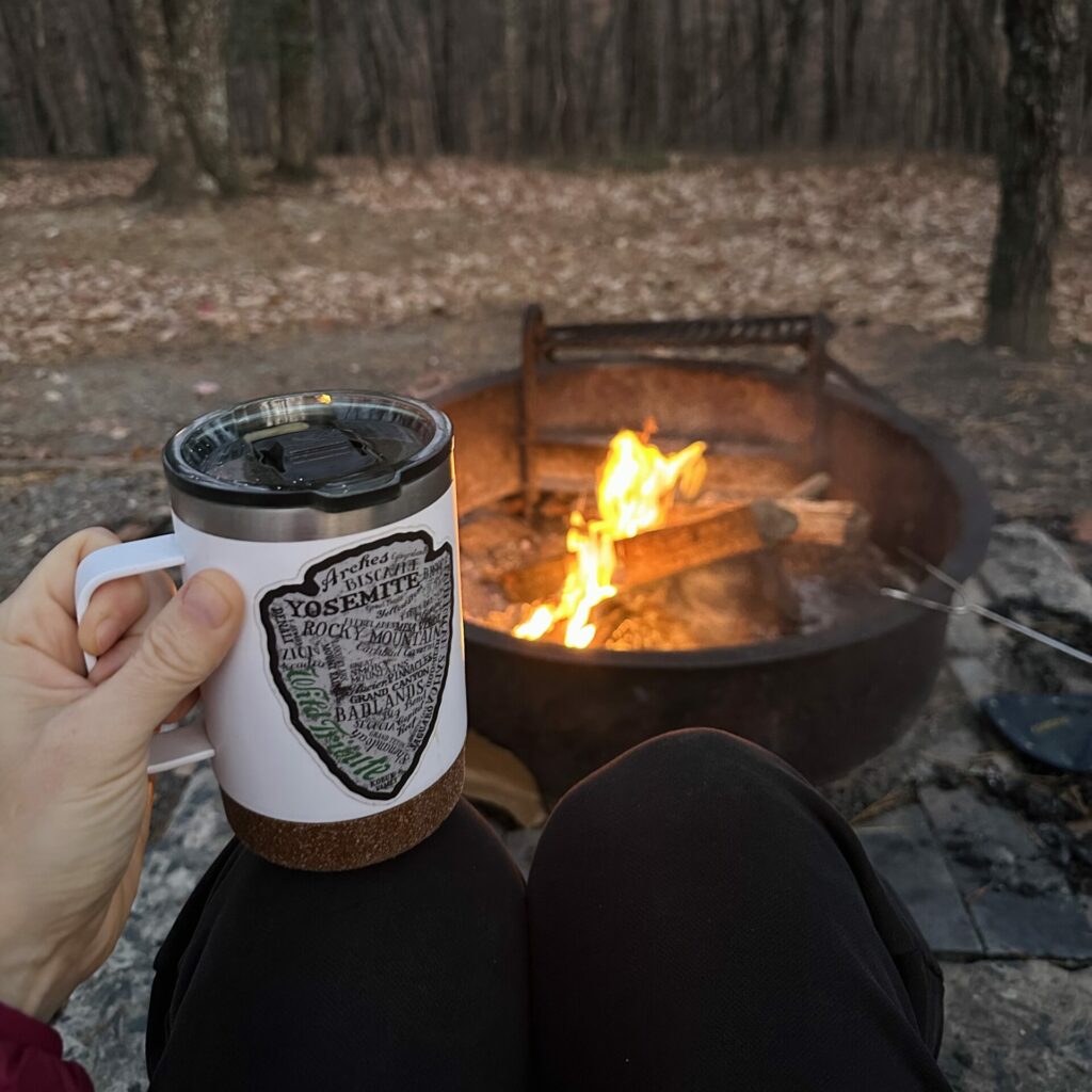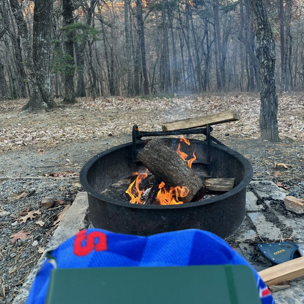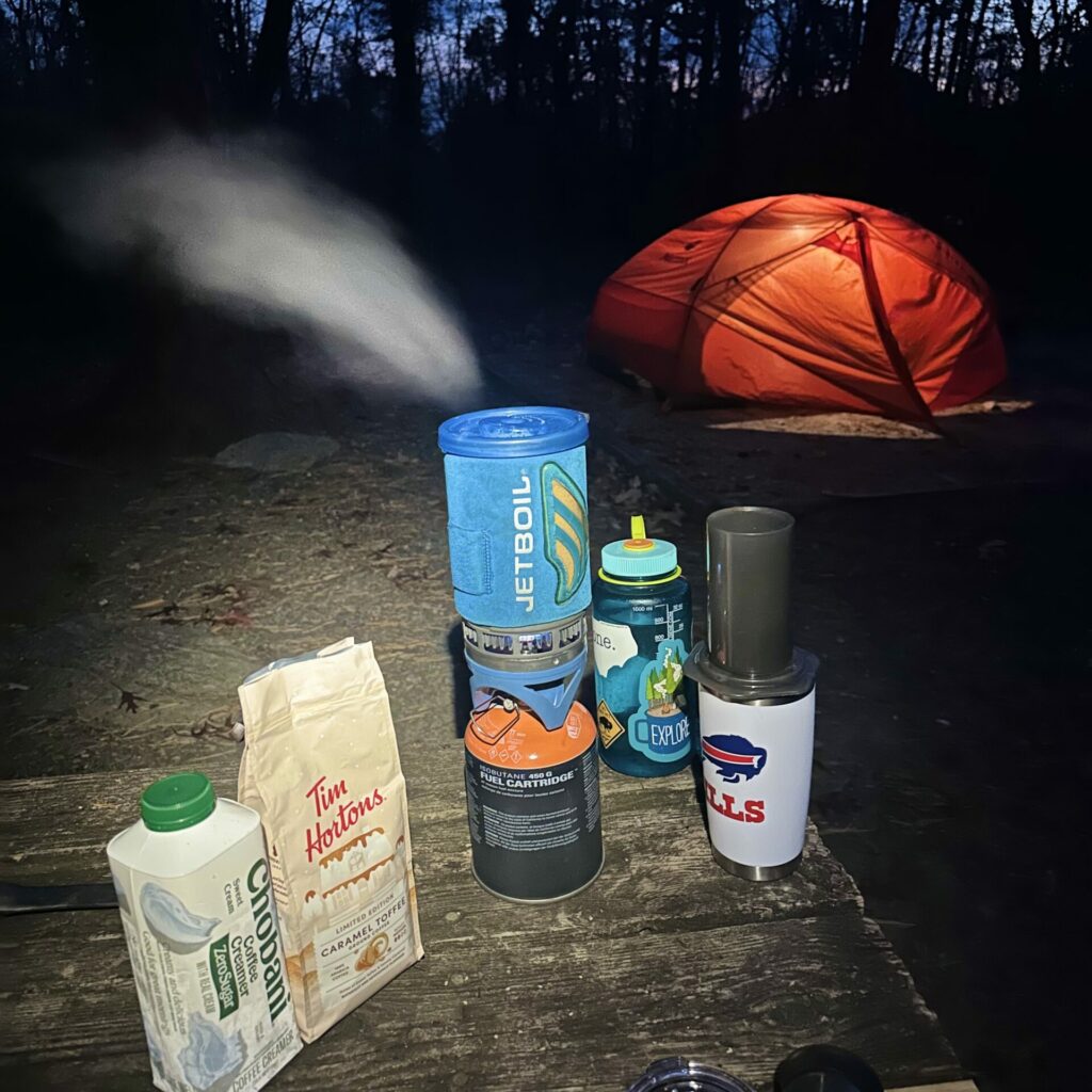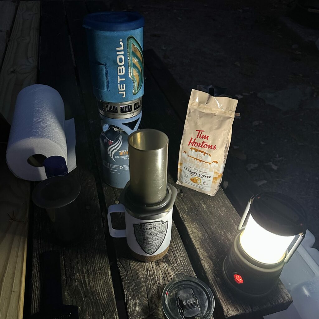 it was pretty dark very early, so i let the fire die out and headed into my tent for the night. of course i woke up at like four am, much the same as i do at home, but i tried to stay bundled up in my sleeping bag for a bit, because traipsing around in the gravel and leaves is louder than you think, and i wanted to be a good neighbor. these thoughtful considerations didn’t last long though, and i got up in the dark of night, and started working on coffee. normally, i’m in a race against time to get to some trailhead, so i raretly endulge in the luxury of a morning campfire, but not this day. i fired that thing right back up and settled in for the most glorious cup(s) of coffee i’ve ever had.