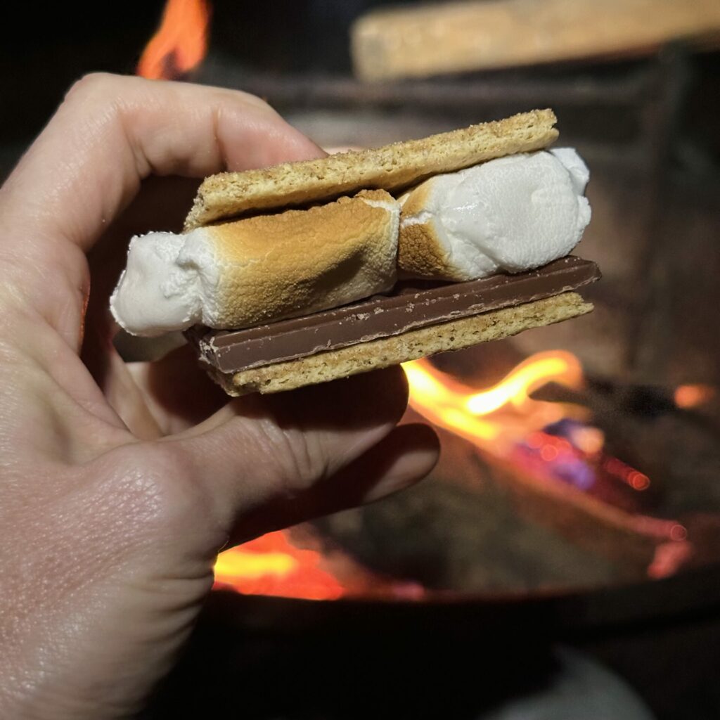 once everything was in its place, it was time for relaxation. first the hammock. and eventually, as the sun began to set and the temps dropped precipitously, the love seat by the campfire. of course there were smores involved.
