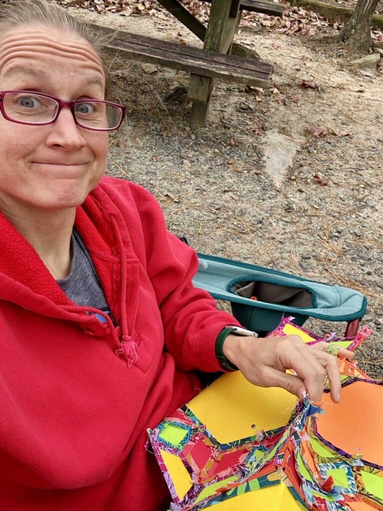 i lounged my little heart out. met some fellow jeep loving neighbors. i had a lot of hammock time (even an elusive nap!). there may or may not have been an obscene amount of trader joe’s fancy snacks consumed. i read a few pages of the overly ambitious pile of books i brought. i toiled away on an english paper pieced quilt that has been making apppearances on this blog for the last three years.