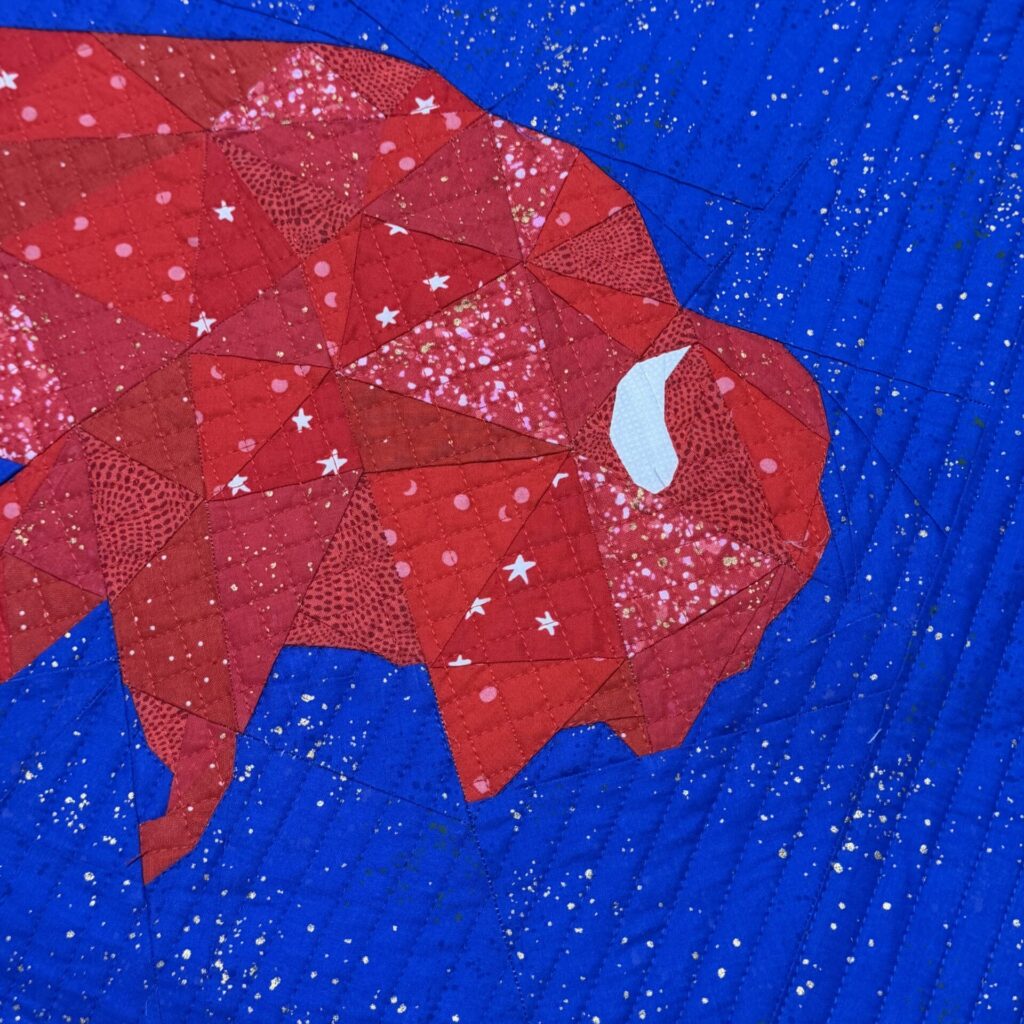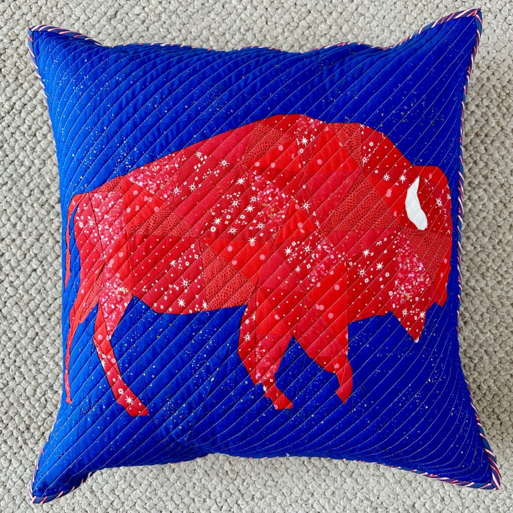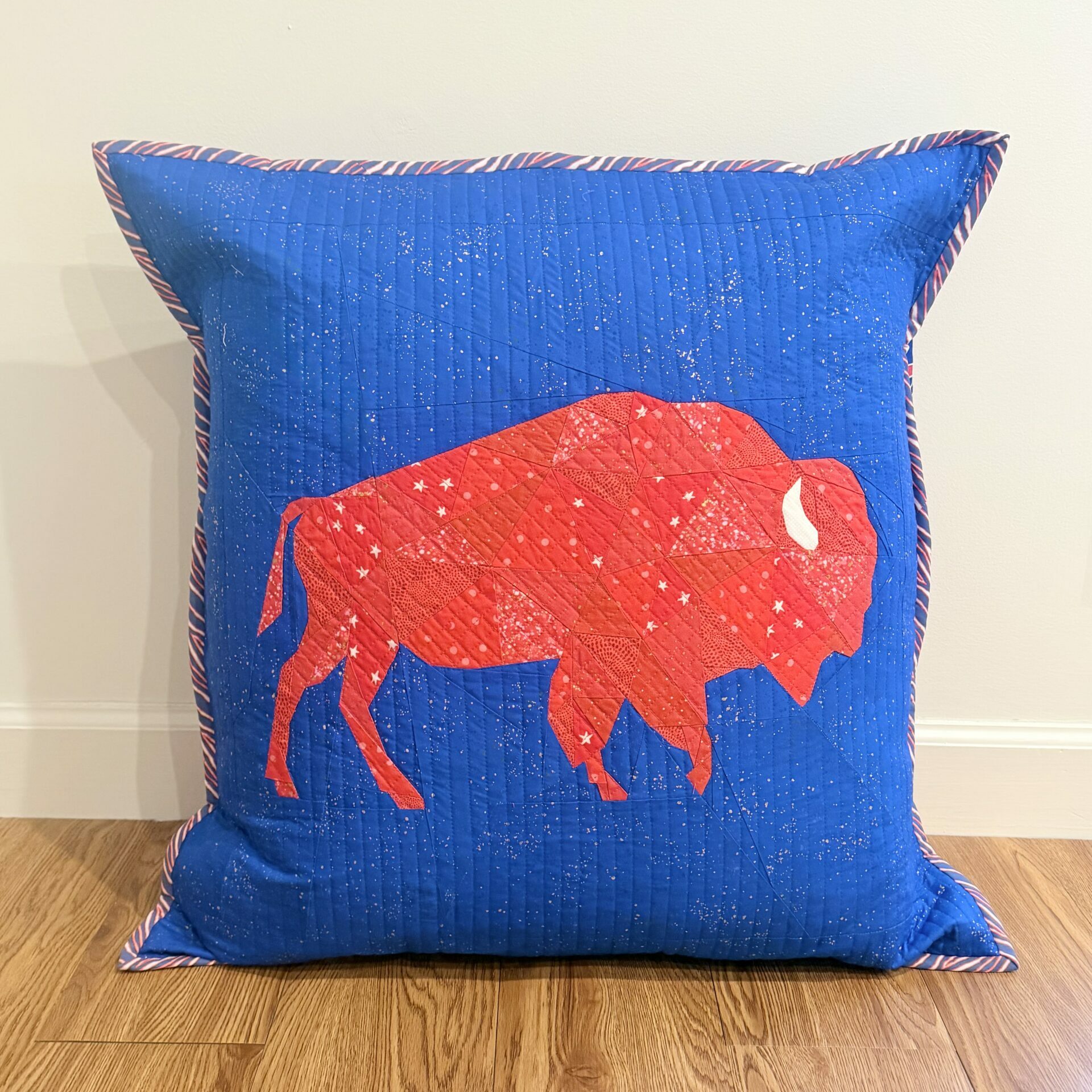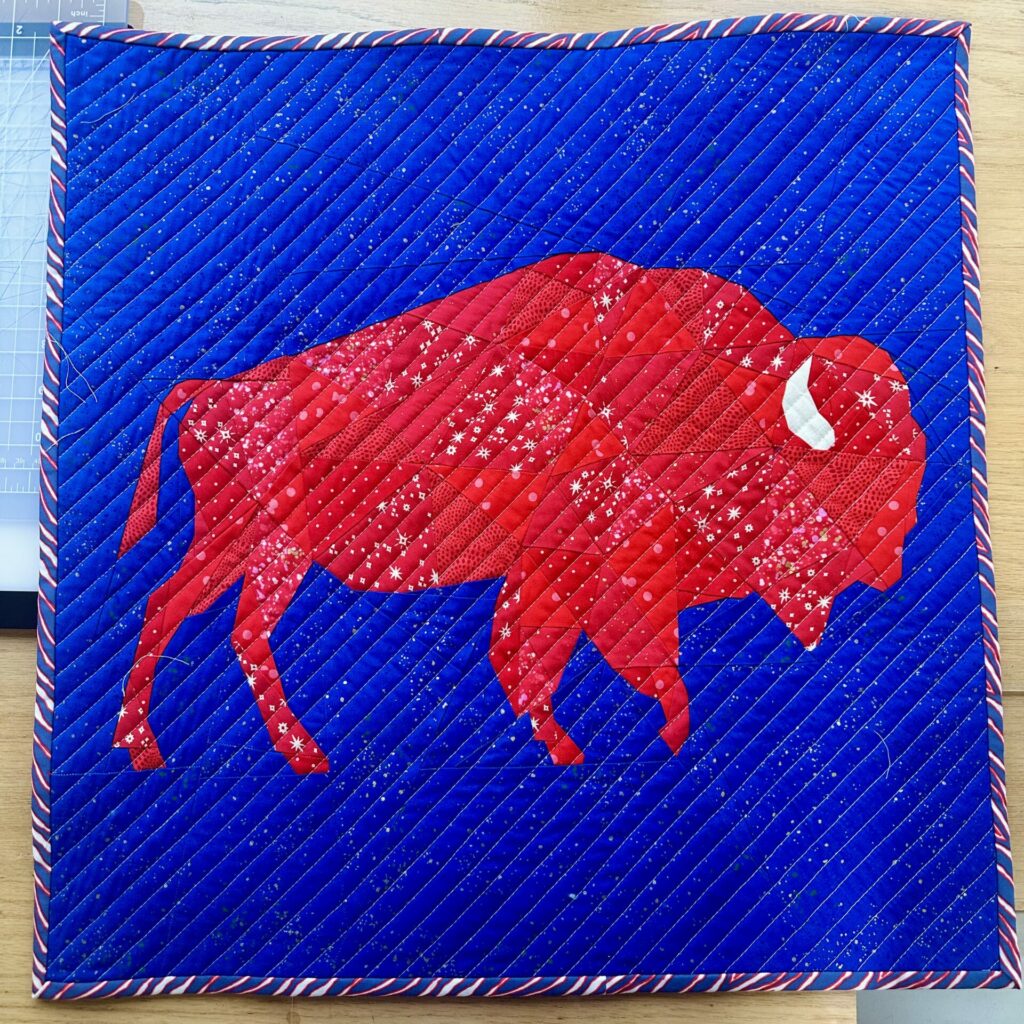 so. back in march, after enough time had passed from another heartbreaking defeat in the playoffs, i was ready to partake in fan related activities once again. a few years ago, i made hazel’s teacher a class gift, using a geometric bison pattern from nerdy and quilty. since then i have wanted to make it into a bills themed block, and with my friend (and fellow western new york ex patriot) jude’s birthday coming up, i had the perfect opportunity….