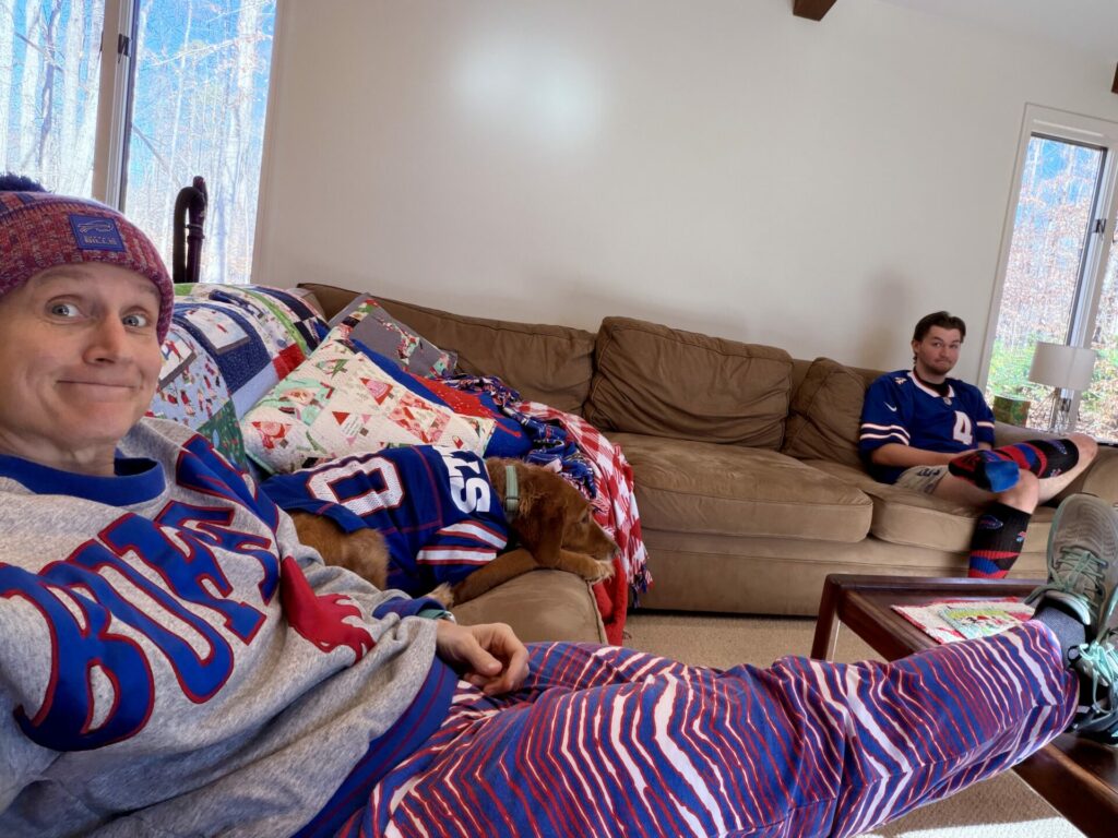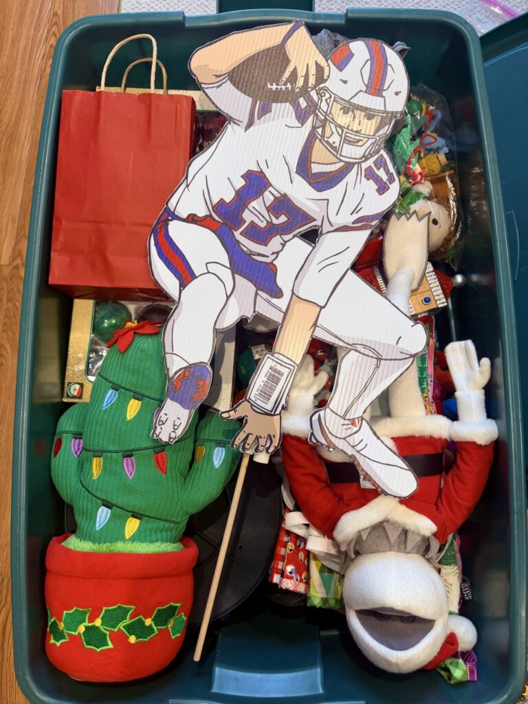 OF COURSE josh allen leaping over things is still our tree topper. it’s been quite a rollercoaster of a year for the bills, which has helped me temper my expectations. when they are good, they are so very good. but when they lose, it’s hard to imagine a playoff run. but we still go all out for every game with our gear and buffalo foods. 🙂