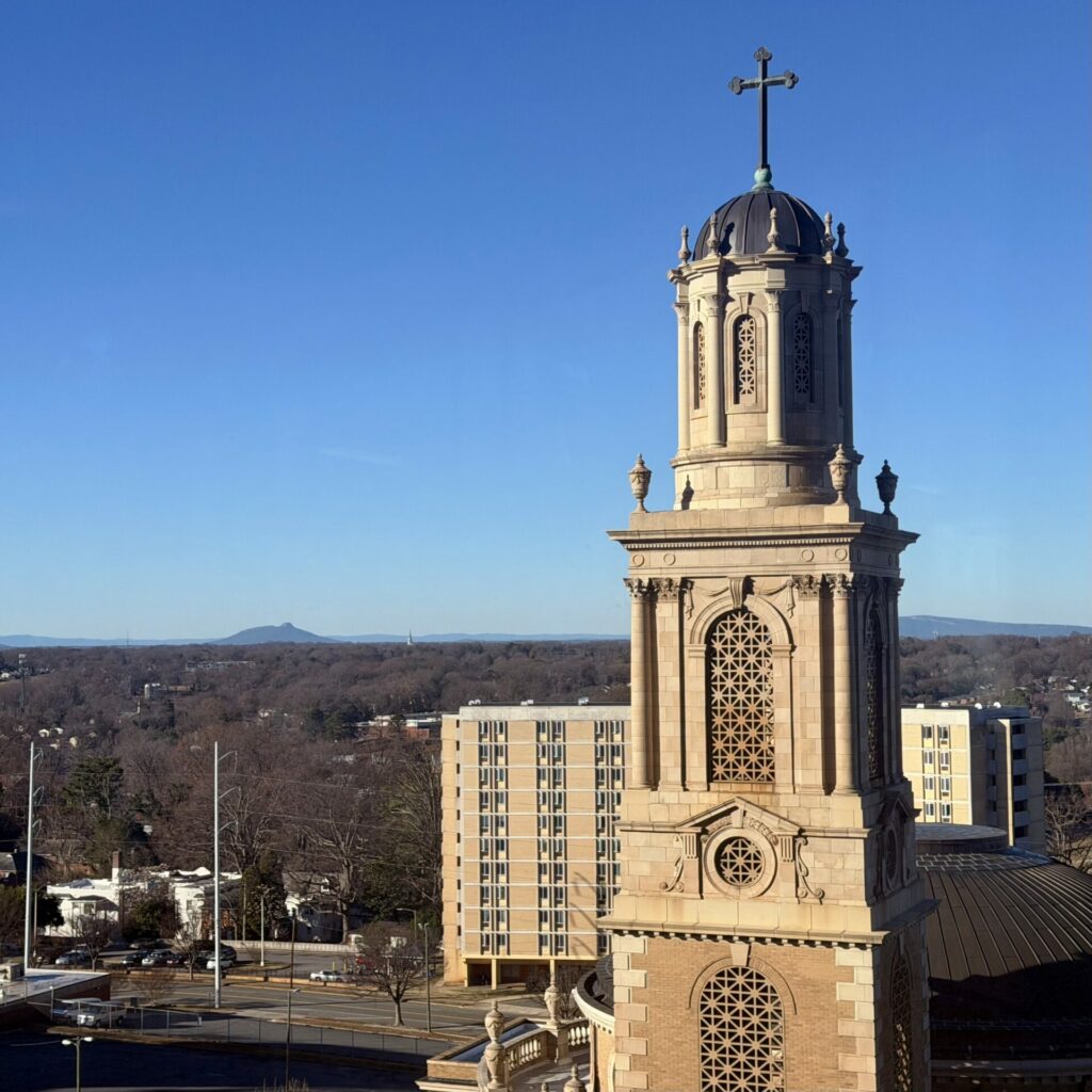 in the middle of january, with less than one month before we are set to start the nursing program, my fellow 2026 absn cohorts and i recieved an email with an enormous list of tasks to complete before the first day of classes. (most of them even sooner). with winter break looming, the cpr class options were few and far between (and far away), but i managed to snag one in a tall building in downtown wsnc, with a cool view of pilot mountain and this old church.