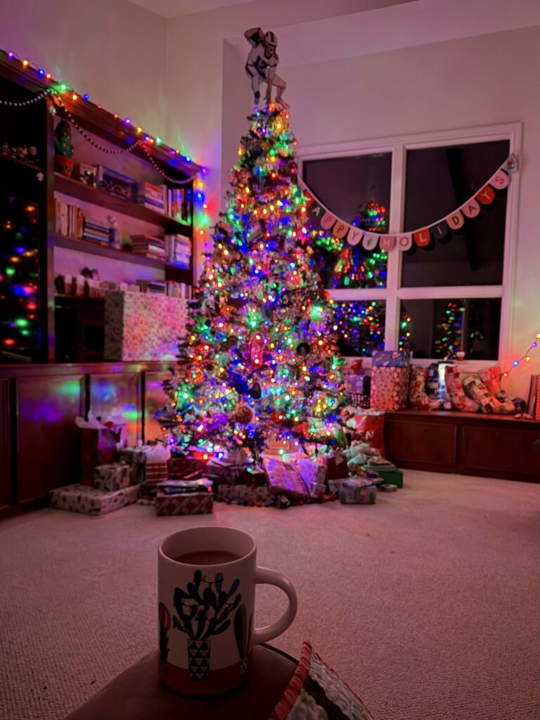 just like every other morning here in my late forties, on december 25th, i awakened at 430 am or so. it worked out nicely, because i hadn’t done the stockings the night before, so i had PLENTY of time to do that and still savor (many) a cup of coffee. in the dark. in the glow of the christmas tree for the last time it will seem magical. (december 26 lights do not hit the same. they just mean clutter and a reminder that the monumental task of packing this all away awaits me).