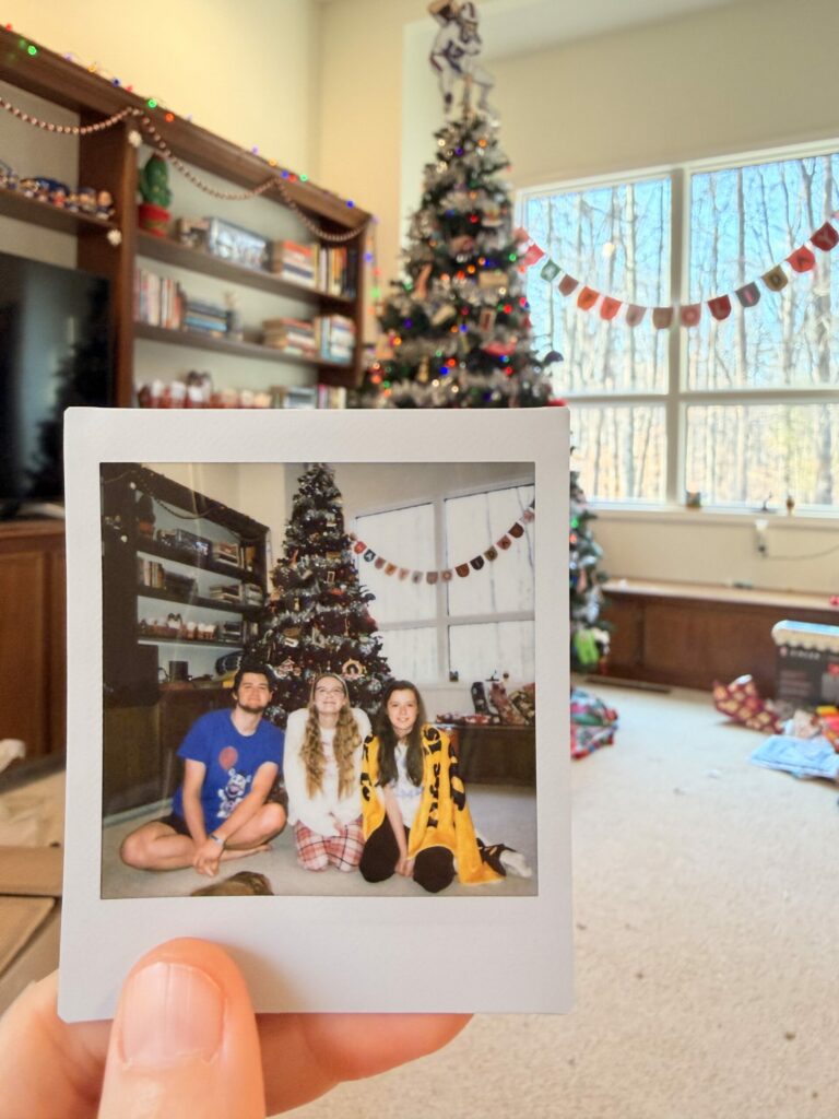 and, it was only fitting that in a year where anna would get a cd and cassette player and i got a ’96 jeep cherokee, that i would commemorate this christmas with an actual physical photo, taken with an instax “polaroid” camera i received on my bday.