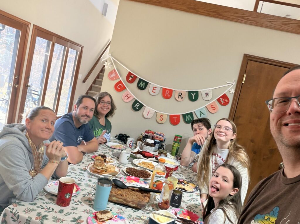 after the gifts were opened and the messes cleaned, for the second year, we had some our pals the muncy’s over for brunch. i think this constitutes calling it an annual tradition now.